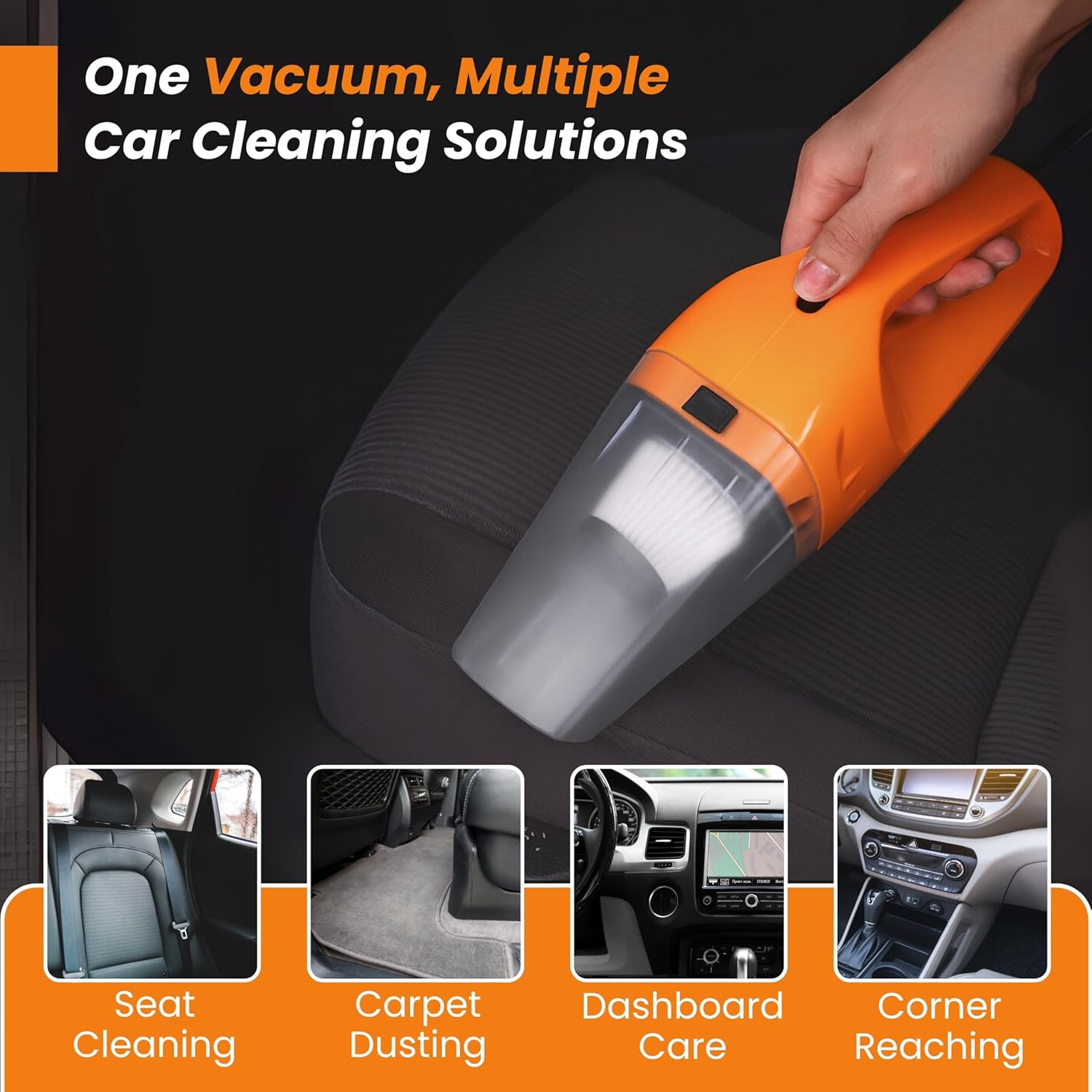 [3800Pa Powerful Suction] Car vacuum cleaner, with the 3.8KPA suction power effectively removes dirt, dust, and debris from your car’s interior, providing a thorough cleaning experience.