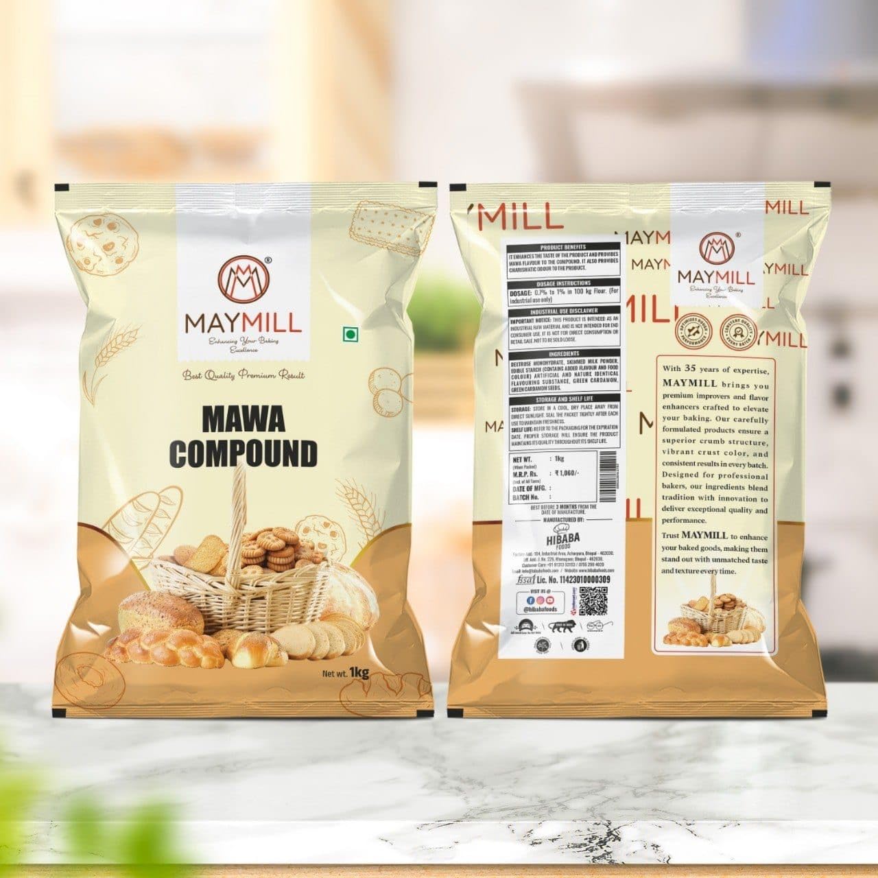 Perfect for commercial bakeries, home bakers, and large-scale baking operations, MAYMILL Mawa Compound helps achieve the ideal crispiness in rusks, a soft yet firm bite in bread, and long-lasting freshness in cookies, biscuits, and other bakery products. Its unique formulation enhances fermentation, dough elasticity, and overall baking quality, making it an essential ingredient for artisan and industrial baking.