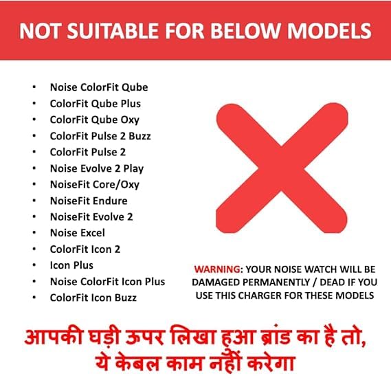 ONLY SUITABLE FOR Noise ColorFit Grande / ColorFit Pro 2/Oxy / ColorFit Beat / ColorFit Vision / ColorFit Caliber / ColorFit Caliber Go / ColorFit Caliber 2 / Caliber 2 Buzz / ColorFit Brio / Evolve3 / X-FIT 2, NoiseFit Active / NoiseFit Agile / ColorFit Nav/Nav+ smartwatches.