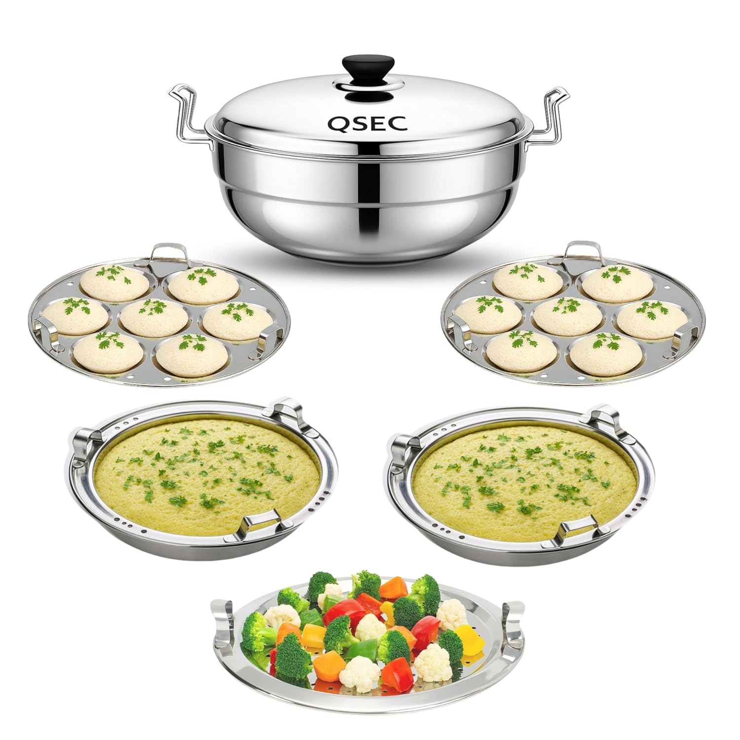 QSEC 3-layer triply base stainless steel idli maker Multi Kadai idly Steamer dhokla cooker | 3 layer thick Base All-in-One Big Size with 5 Plate | 2 idli | 2 Dhokla | 1 Patra | Induction & Gas stove Compatible | Sandwich Bottom Multipurpose kadai81We1GrAjwL. SL1500816Ws2G8aIL. SL150081BnLB6Z5SL. SL150081zEgrOnvwL. SL150071neA6058sL. SL150071Aeu7dA3TL. SL1500