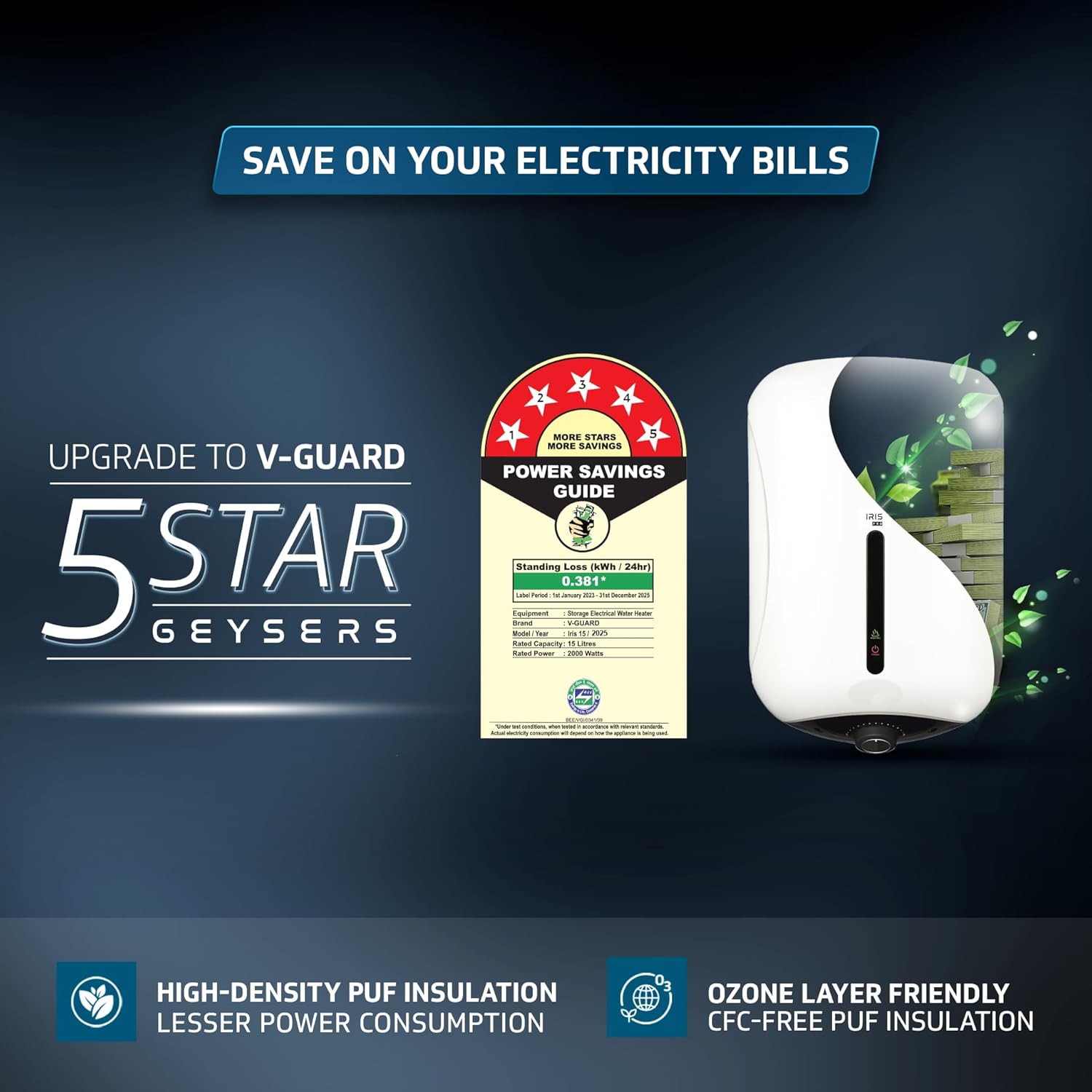 ENHANCED ENERGY EFFICIENCY: BEE 5 Star Rated Storage Water Heater with Thick & High Density PUF Insulation for maximum heat retention.